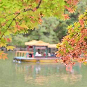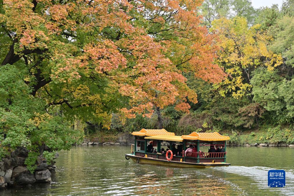 11月3日,游人在北京頤和園后湖乘船觀(guān)賞紅葉。