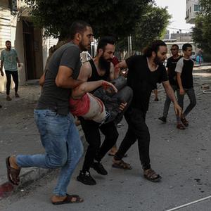 11月2日,人們在加沙城遭以軍空襲后轉移傷者。