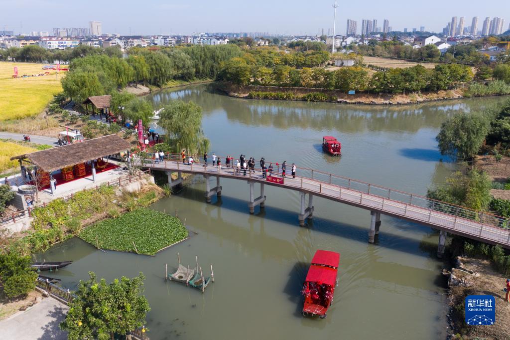 坐上大花轎、走過(guò)合歡橋、跨過(guò)紅火缸、同乘幸福船……11月3日,一場(chǎng)“良緣水鄉締 佳偶自天成”水鄉集體婚禮在浙江省杭州市臨平區塘棲鎮丁河村新建成的“丁山湖魚(yú)鷹愛(ài)情故事婚禮基地”舉行。八對新人在村民和游客的見(jiàn)證下喜結良緣,并發(fā)出《婚俗改革倡議書(shū)》,向廣大適婚青年傳播新時(shí)代的婚戀觀(guān),倡導健康文明的嫁娶新風(fēng)尚。該婚禮基地依托水鄉風(fēng)貌,已成為當地特色鄉村文旅品牌。
