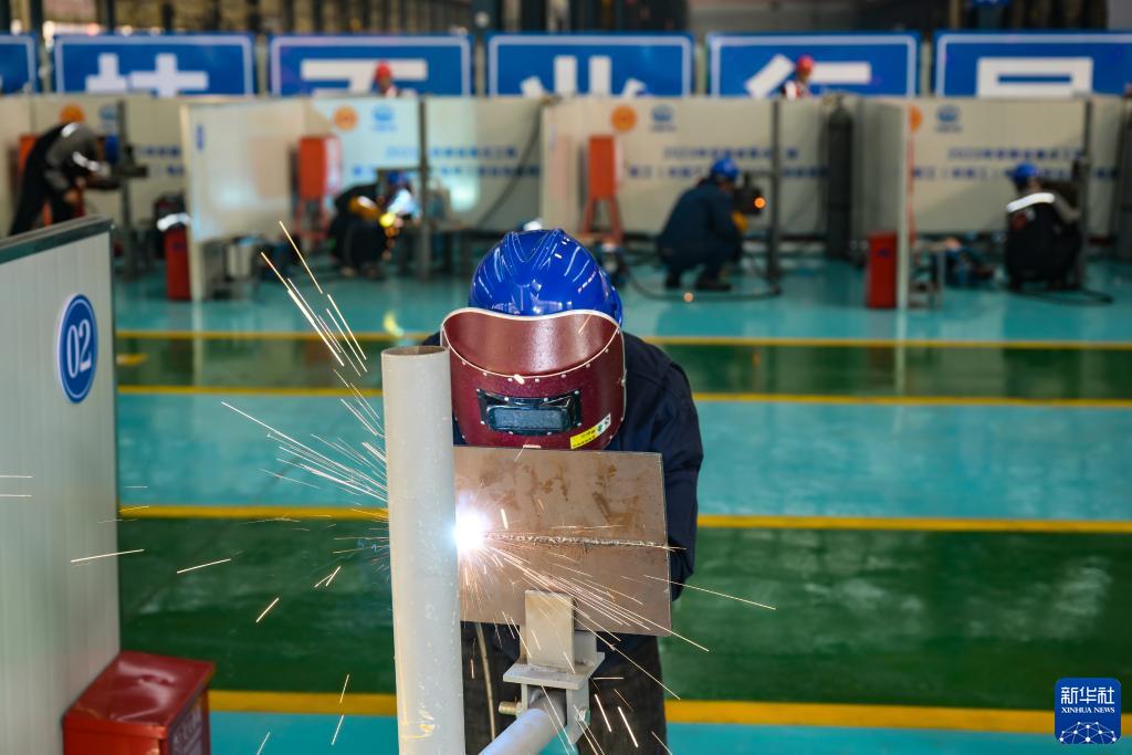 當日,2023年安徽省重點(diǎn)工程職工(農民工)電焊工職業(yè)技能競賽在合肥舉行,來(lái)自安徽省重點(diǎn)工程建設崗位上的40名青年焊接能手在比賽中各展絕活、比拼職業(yè)技能。