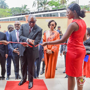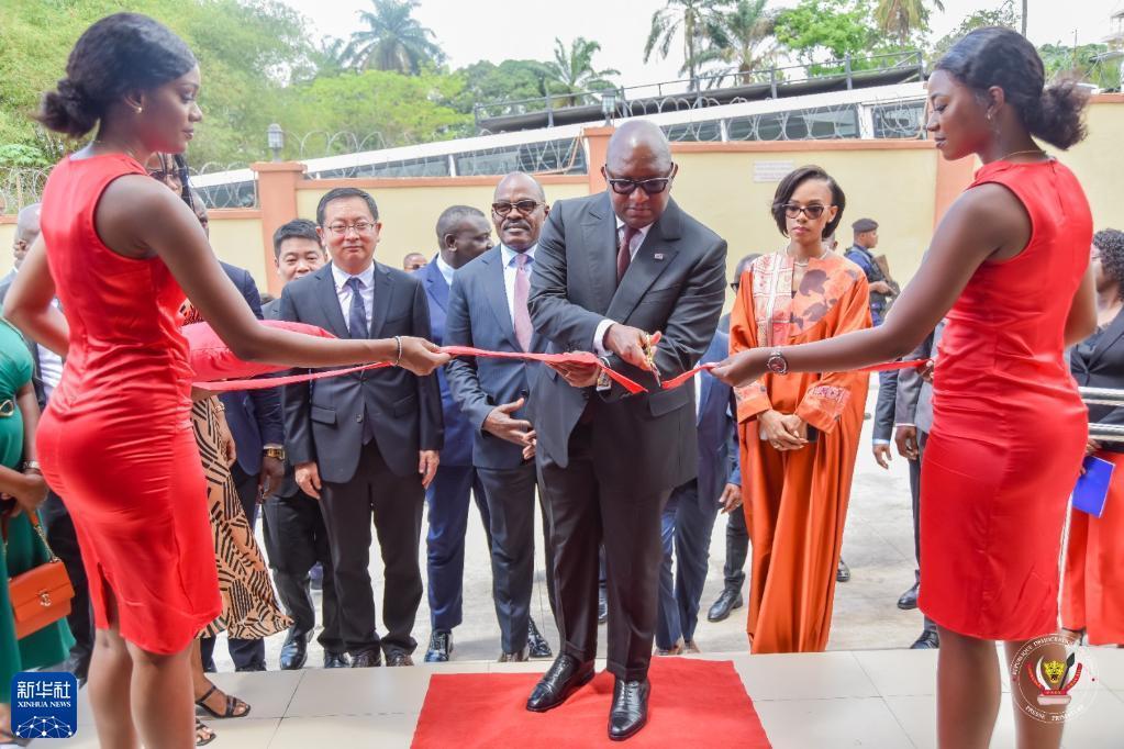 11月2日,剛果(金)總理盧孔德(前中)在首都金沙薩舉行的落成儀式上剪彩。