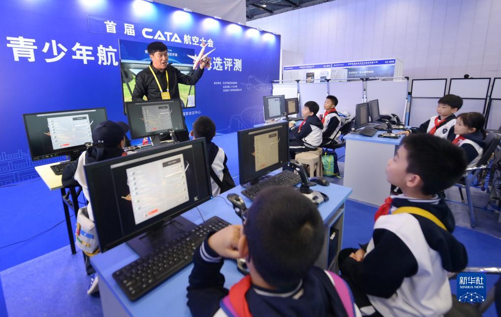 11月3日,來(lái)自北京市白家莊小學(xué)的學(xué)生在展會(huì )上參與青少年航空預備人才海選評測。