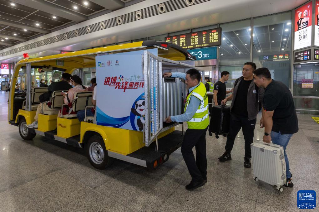 第六屆中國國際進(jìn)口博覽會(huì )開(kāi)幕在即,上海虹橋火車(chē)站在站廳內設立進(jìn)博志愿者和進(jìn)博服務(wù)窗口,在售票處開(kāi)辟了進(jìn)博會(huì )服務(wù)專(zhuān)區,并開(kāi)行上海虹橋站進(jìn)博直通車(chē),參展旅客和相關(guān)工作人員出示相關(guān)證件即可免費搭乘,直接前往國家會(huì )展中心(上海)。