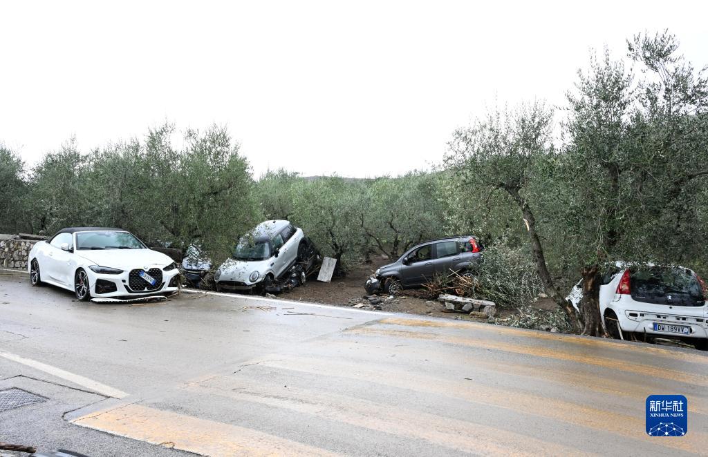 11月3日,在意大利托斯卡納大區比森齊奧營(yíng),車(chē)輛遭風(fēng)暴毀壞。新華社發(fā)