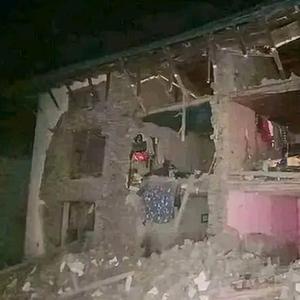 這是11月3日在尼泊爾西部拍攝的被地震損毀的大樓。