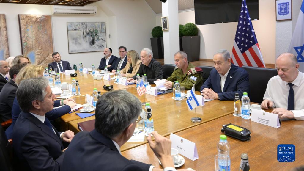 11月3日,在以色列特拉維夫,以色列總理內塔尼亞胡(后排右二)會(huì )見(jiàn)到訪(fǎng)的美國國務(wù)卿布林肯(前排右二)。