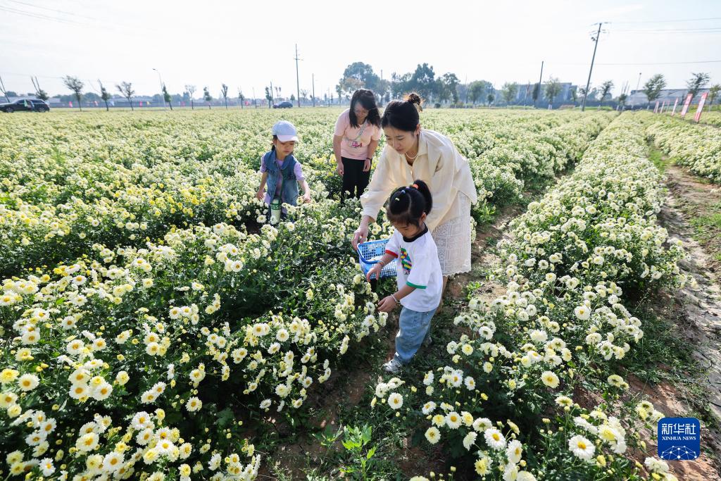 11月4日,游客在三村村杭白菊基地里體驗杭白菊采摘。