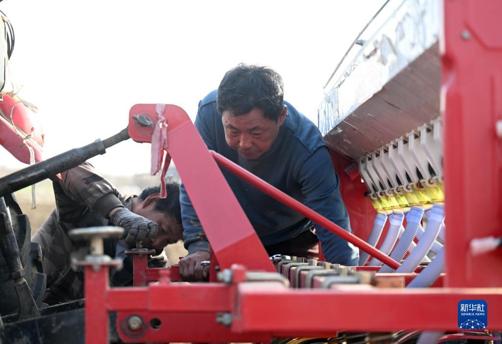 11月4日,天津市靜海區臺頭鎮農民在維護農機設備。