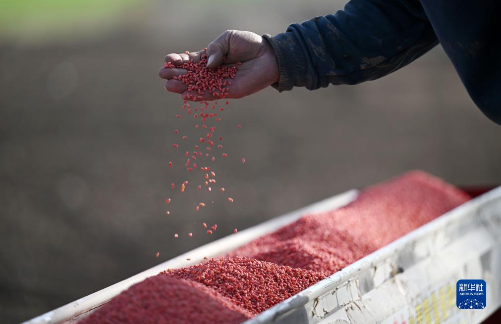 11月4日,天津市靜海區臺頭鎮農戶(hù)在檢查小麥種子。