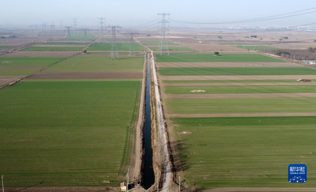 11月4日,在天津市靜海區臺頭鎮,部分播種的冬小麥已陸續出苗(無(wú)人機照片)。