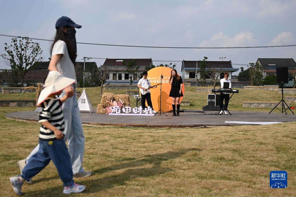 11月4日,歌手在南潯區雙林鎮萬(wàn)畝稻蝦綜合種養示范區的稻田音樂(lè )會(huì )上演唱。