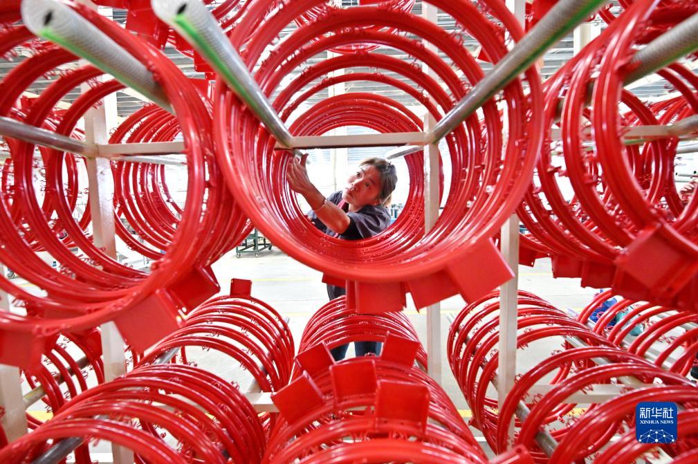 10月30日,工人在唐山市蘆臺經(jīng)濟開(kāi)發(fā)區一家體育器材生產(chǎn)企業(yè)的車(chē)間工作。