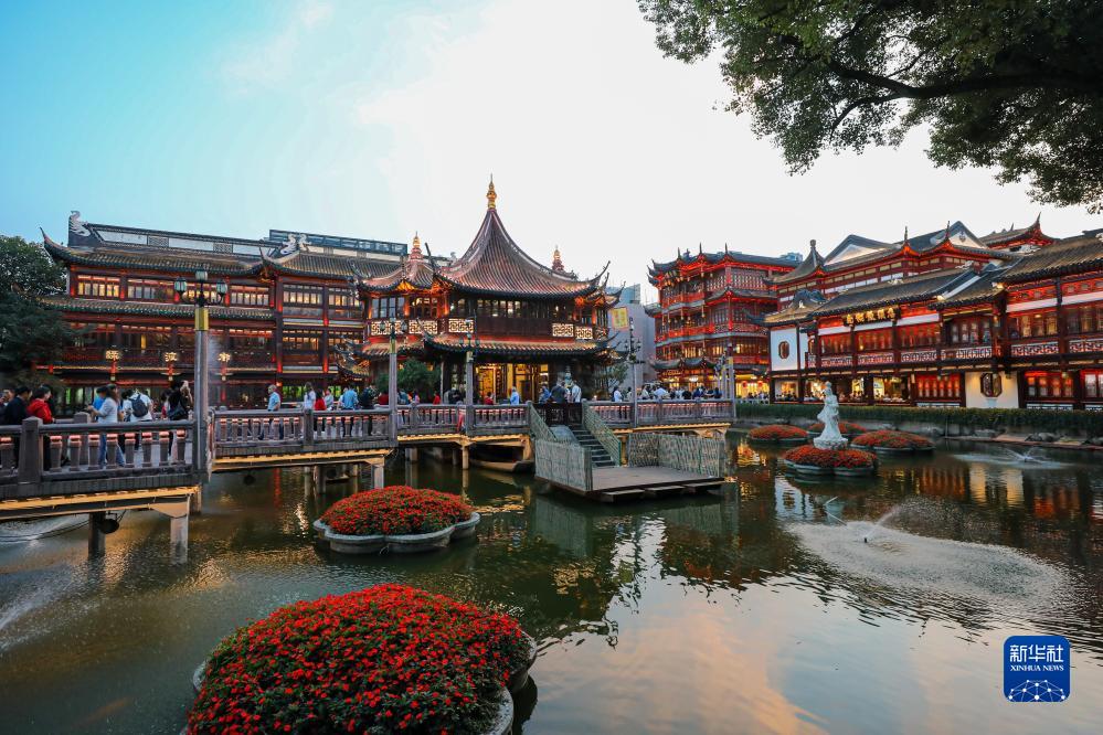11月3日,游客在上海豫園的湖心亭參觀(guān)。