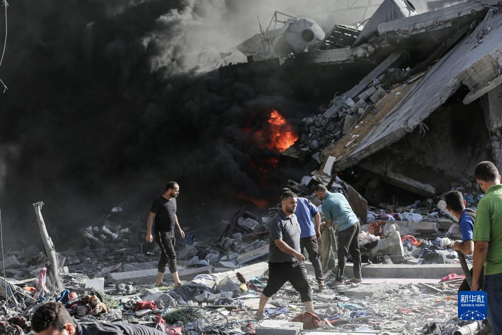 11月4日,在加沙城,人們查看遭以色列襲擊后的建筑廢墟。