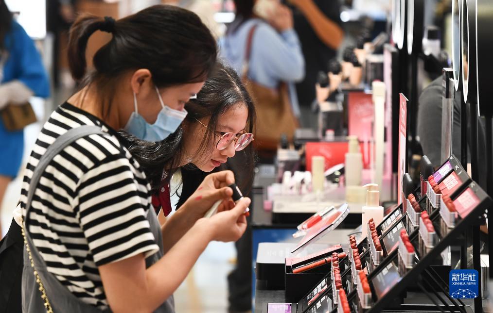 游客在中免集團??谌赵聫V場(chǎng)免稅店選購免稅商品(4月30日攝)。