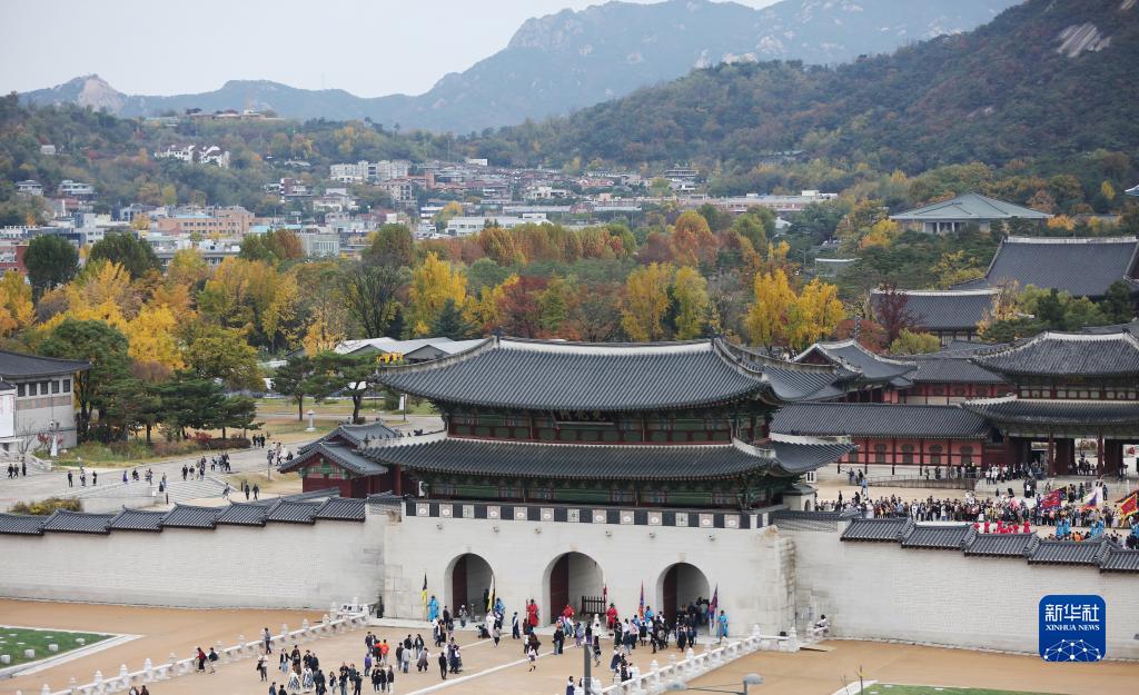 這是11月5日拍攝的韓國首爾市光化門(mén)廣場(chǎng)附近的秋景。