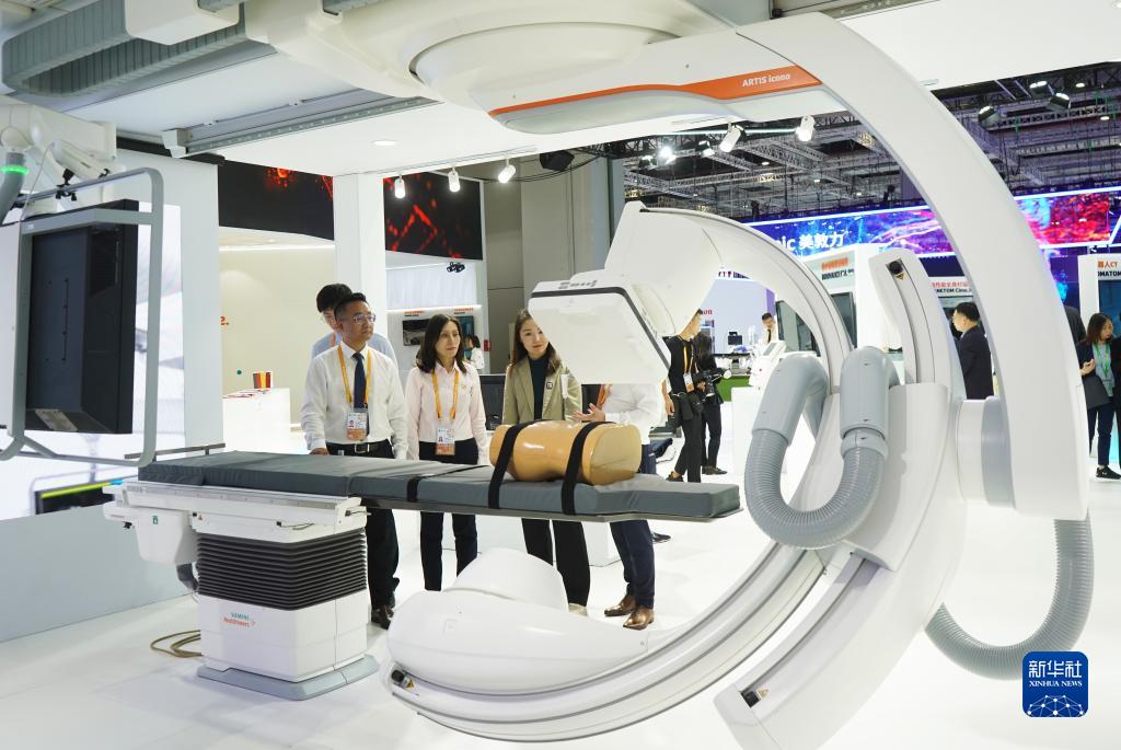 11月5日在第六屆進(jìn)博會(huì )醫療器械及醫藥保健展區西門(mén)子展臺拍攝的全球首款量子能譜血管造影系統。