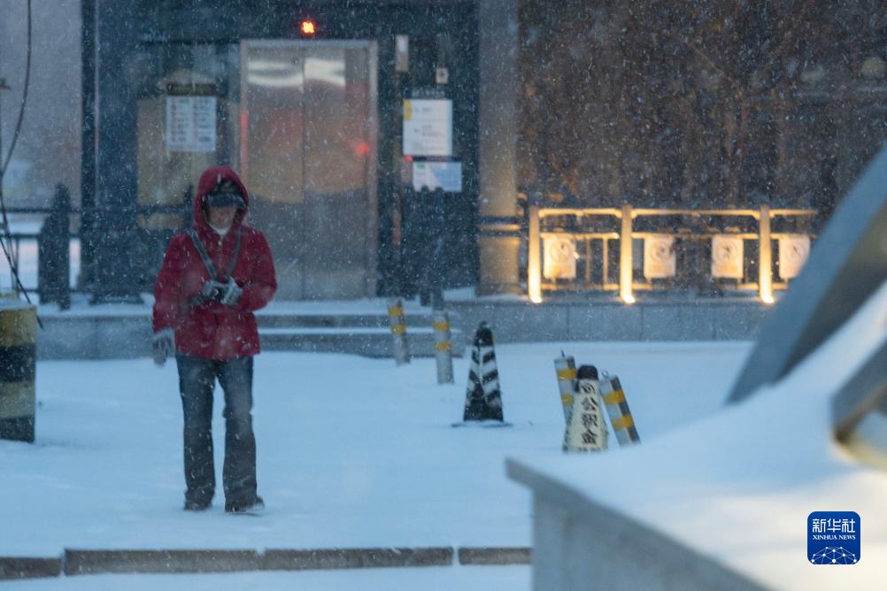 11月6日,在哈爾濱市香坊區,行人在雪中行走。