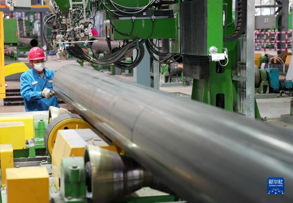 11月5日,工人在秦皇島經(jīng)濟技術(shù)開(kāi)發(fā)區中石油寶世順(秦皇島)鋼管有限公司鋼管生產(chǎn)線(xiàn)上工作。