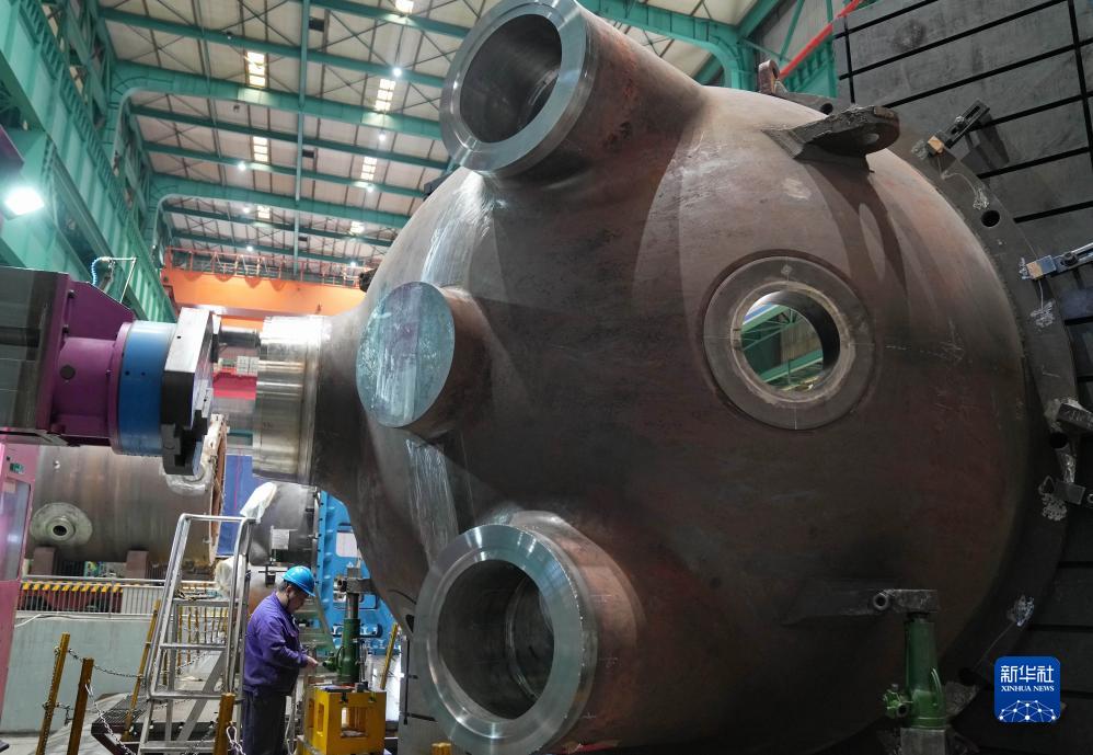 11月5日,工人在秦皇島經(jīng)濟技術(shù)開(kāi)發(fā)區哈電集團(秦皇島)重型裝備有限公司的生產(chǎn)車(chē)間工作。