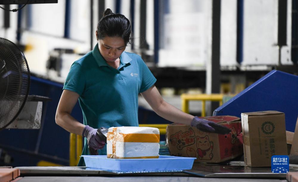 11月6日,在中國郵政集團有限公司??卩]區中心,工作人員在分揀包裹。