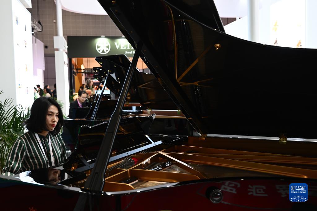 11月6日,觀(guān)眾彈奏展出的斯坦威鋼琴。