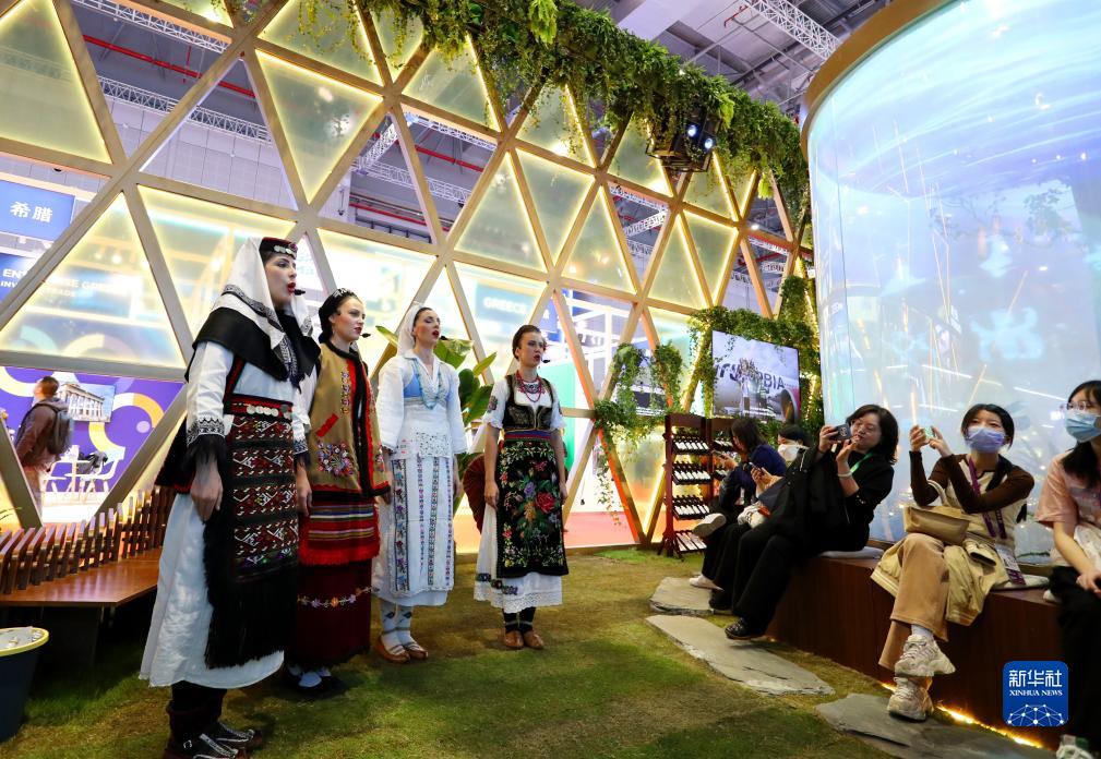 11月6日,演職人員在第六屆進(jìn)博會(huì )國家展塞爾維亞展臺演唱傳統歌曲。