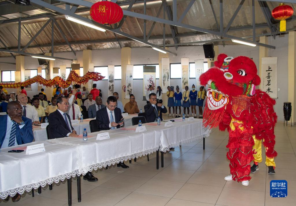 11月6日,學(xué)生在納米比亞溫得和克舉行的納米比亞大學(xué)孔子學(xué)院建院十周年慶典上表演舞龍、舞獅。
