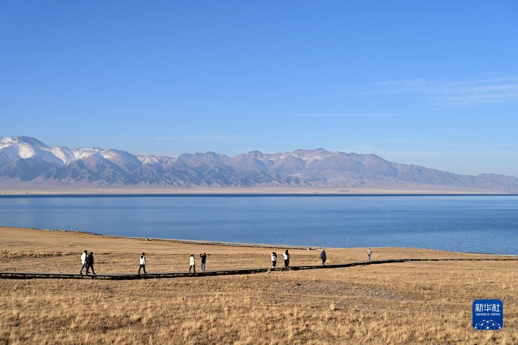 11月6日,游客在新疆賽里木湖邊游玩。