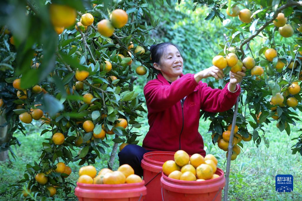 11月7日,在貴州省開(kāi)陽(yáng)縣南龍鄉土香村,果農在采摘蜜橘。