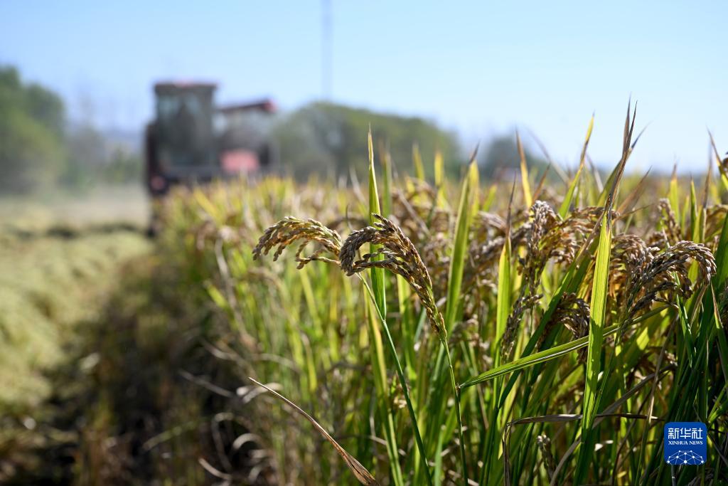 11月7日,在安徽省蕪湖市繁昌區荻港鎮,村民駕駛收割機收割水稻。
