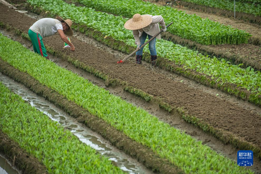 11月7日,在海南省瓊海市嘉積鎮大坡村,農民在種植葉菜。