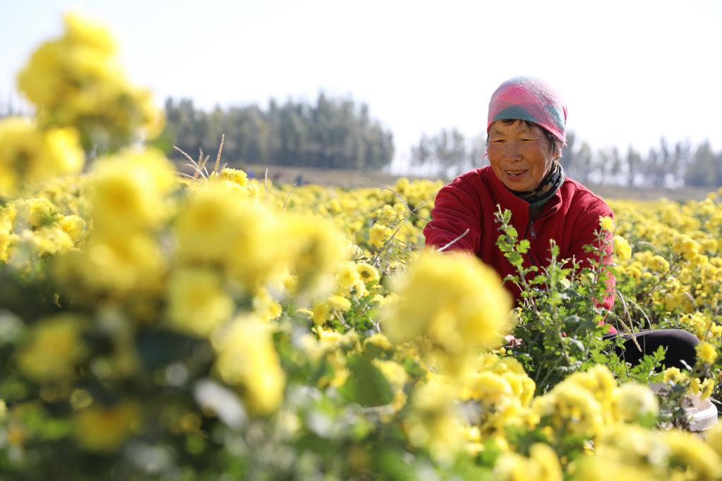 11月7日,河南省焦作市溫縣黃河街道下石井村農民在采收懷菊花。
