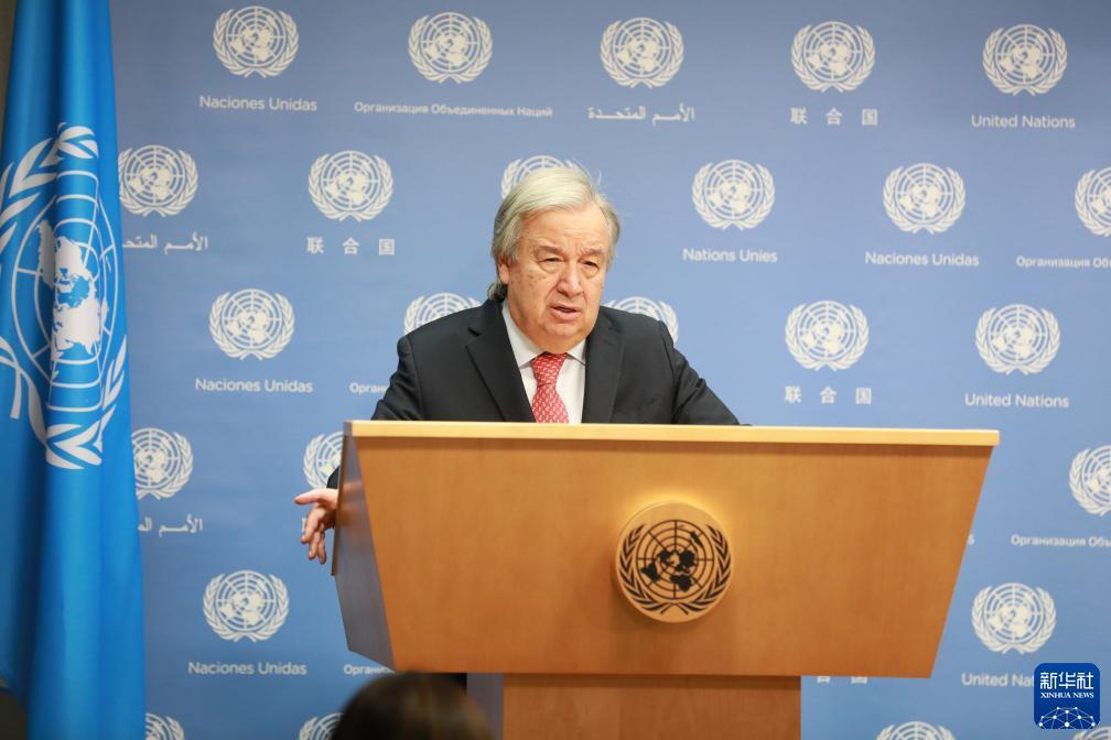11月6日,聯(lián)合國秘書(shū)長(cháng)古特雷斯在位于紐約的聯(lián)合國總部舉行的記者會(huì )上講話(huà)。
