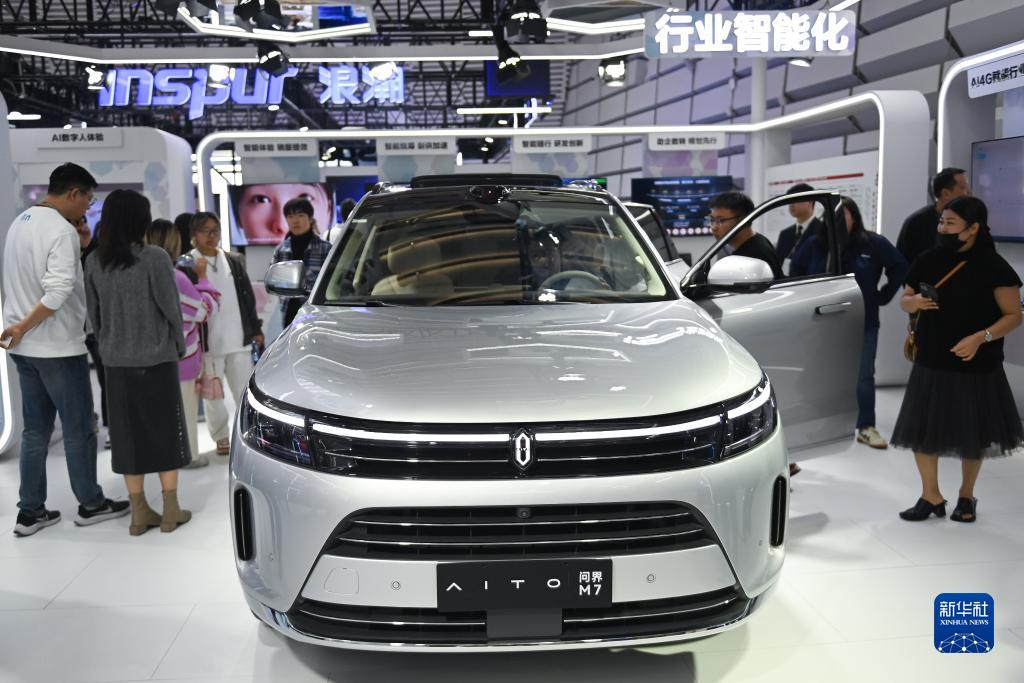11月7日,觀(guān)眾在“互聯(lián)網(wǎng)之光”博覽會(huì )上參觀(guān)問(wèn)界汽車(chē)。