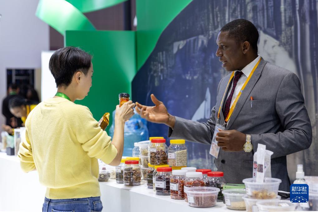11月7日,在進(jìn)博會(huì )國家館尼日利亞館,展商介紹尼日利亞產(chǎn)品。