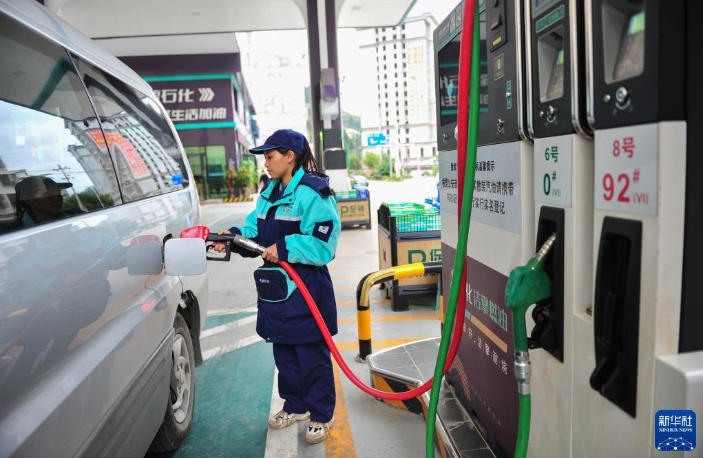 11月7日,貴州省從江縣一加油站工作人員在給汽車(chē)加油。