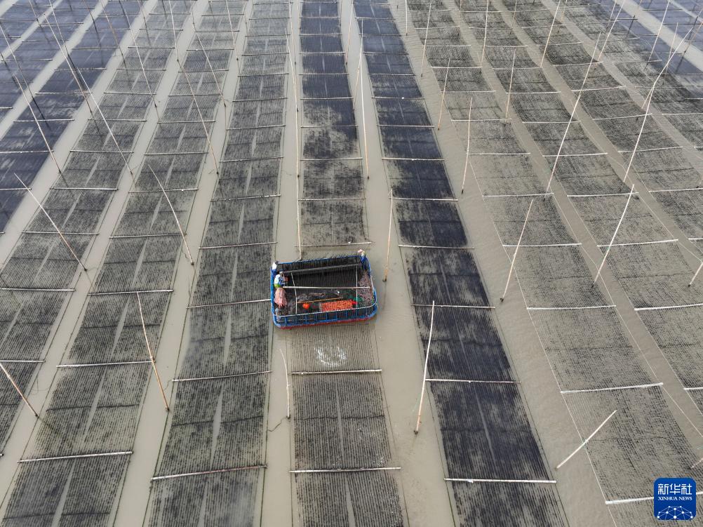 浙江蒼南:“頭水紫菜”進(jìn)入采收期