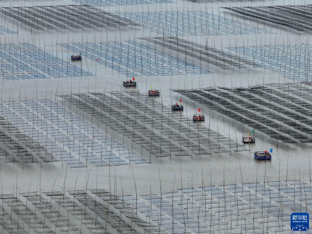 浙江蒼南:“頭水紫菜”進(jìn)入采收期