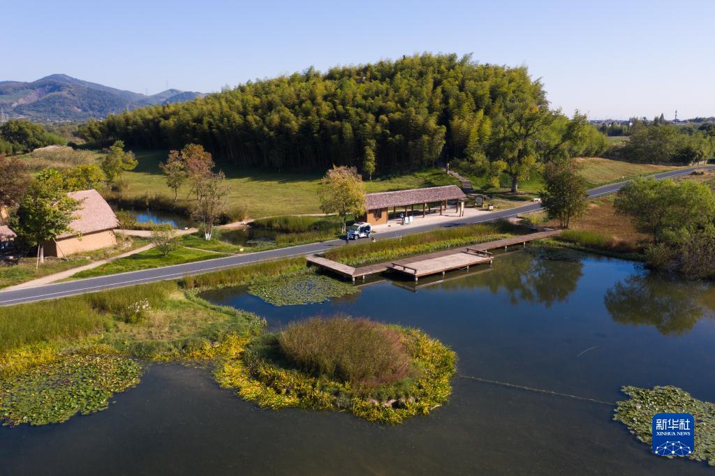 11月7日拍攝的良渚古城遺址公園內的雉山(無(wú)人機照片)。