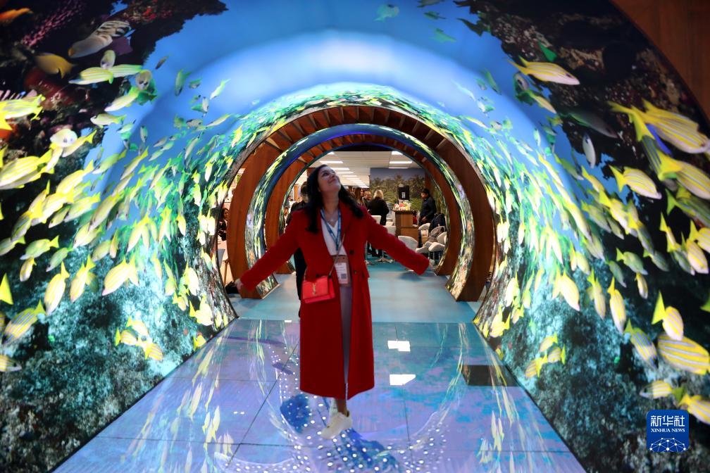 11月6日,一名女子在2023年英國倫敦世界旅游交易會(huì )馬爾代夫展區參觀(guān)。