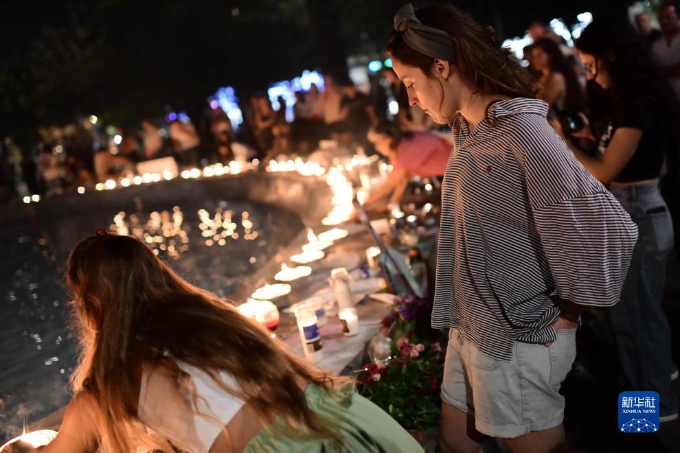 11月7日,在以色列特拉維夫,人們向死者寄托哀思,并為被挾持的人員祈禱。