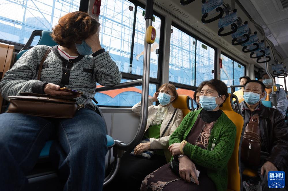 11月7日,在66路公交車(chē)上,幾名老年市民在聊天。