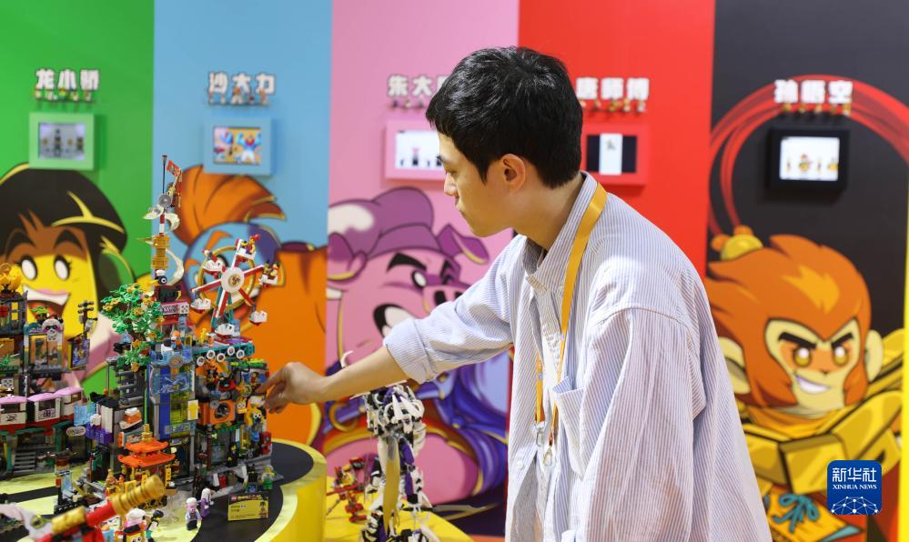 11月6日,在第六屆進(jìn)博會(huì )消費品展區樂(lè )高集團展臺,樂(lè )高設計師溫笑冬介紹其參與設計并在本屆進(jìn)博會(huì )首發(fā)的樂(lè )高悟空小俠萬(wàn)千城玩具套裝。