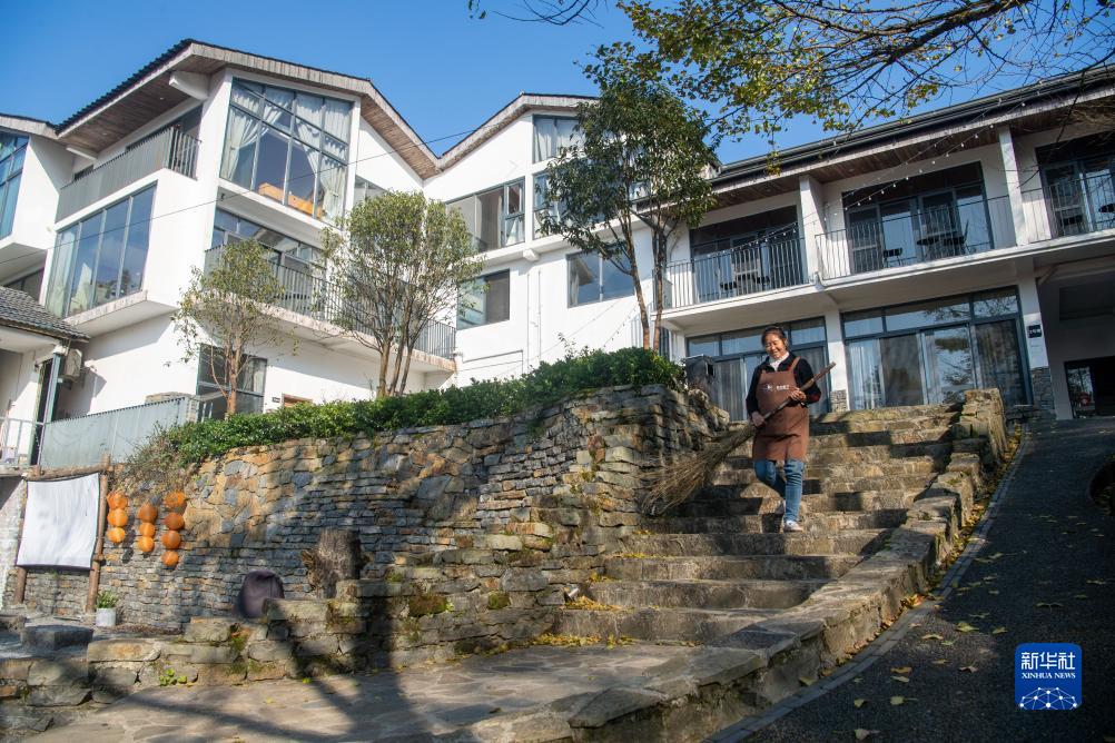 11月7日,在“178環(huán)線(xiàn)”上的一家名為“銀杏樹(shù)下的民宿”內,工作人員進(jìn)行清掃工作。