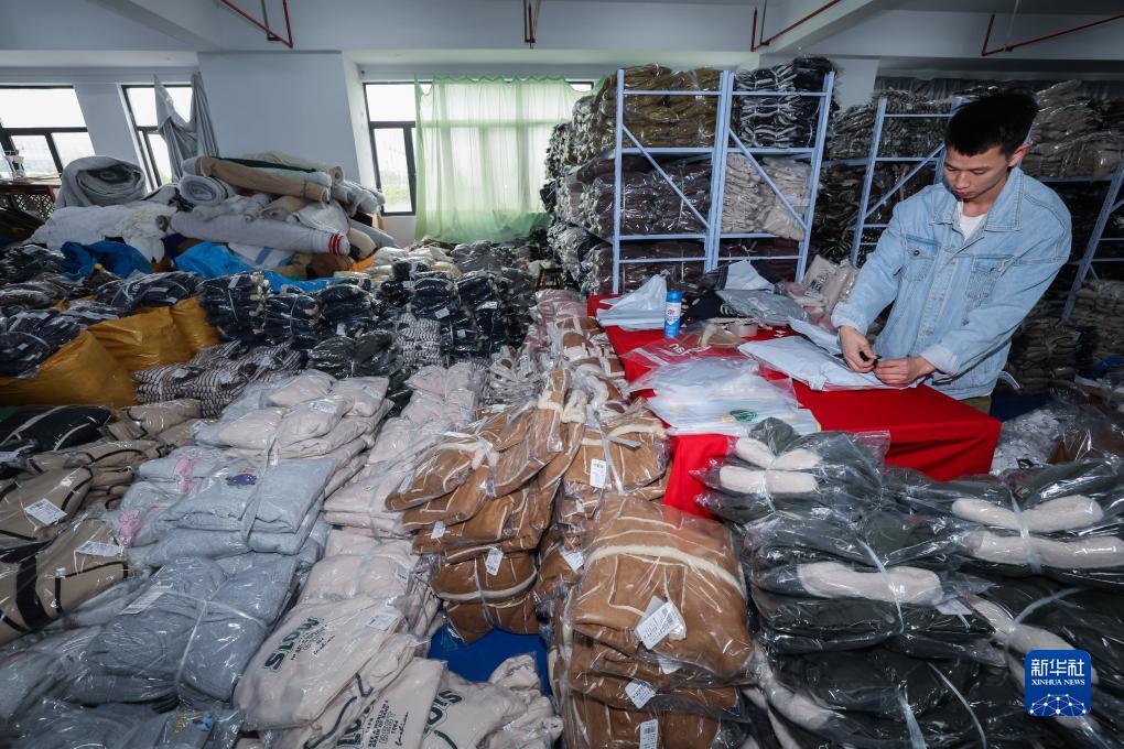 11月8日,在位于織里鎮的湖州慕橙服飾有限公司庫房?jì)?,工作人員根據網(wǎng)絡(luò )訂單打包童裝。