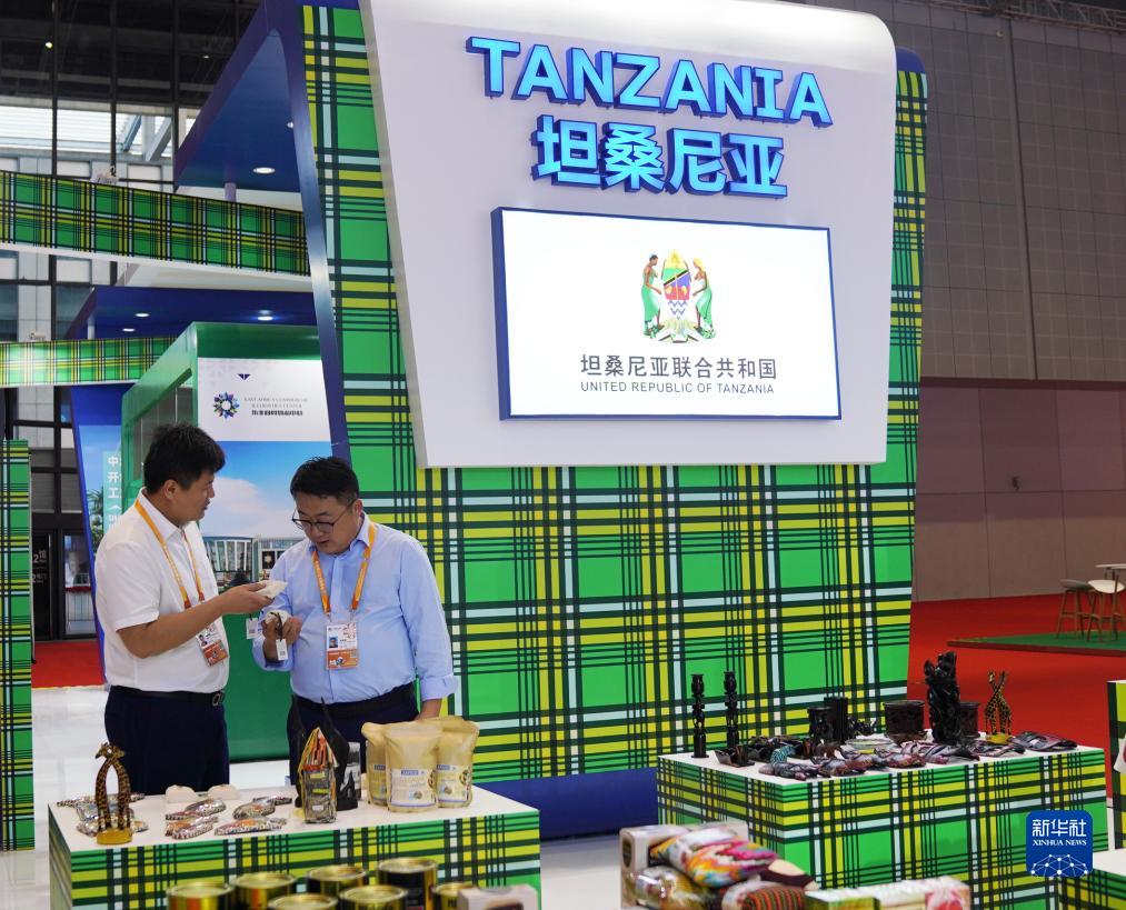11月5日,觀(guān)眾在第六屆進(jìn)博會(huì )坦桑尼亞展臺挑選商品。