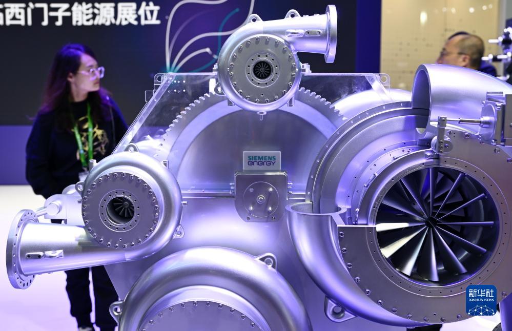 11月7日,觀(guān)眾參觀(guān)第六屆進(jìn)博會(huì )西門(mén)子能源展位上的展品。