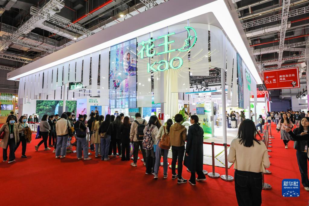 11月7日,游客在第六屆進(jìn)博會(huì )消費品展區參觀(guān)花王展臺。