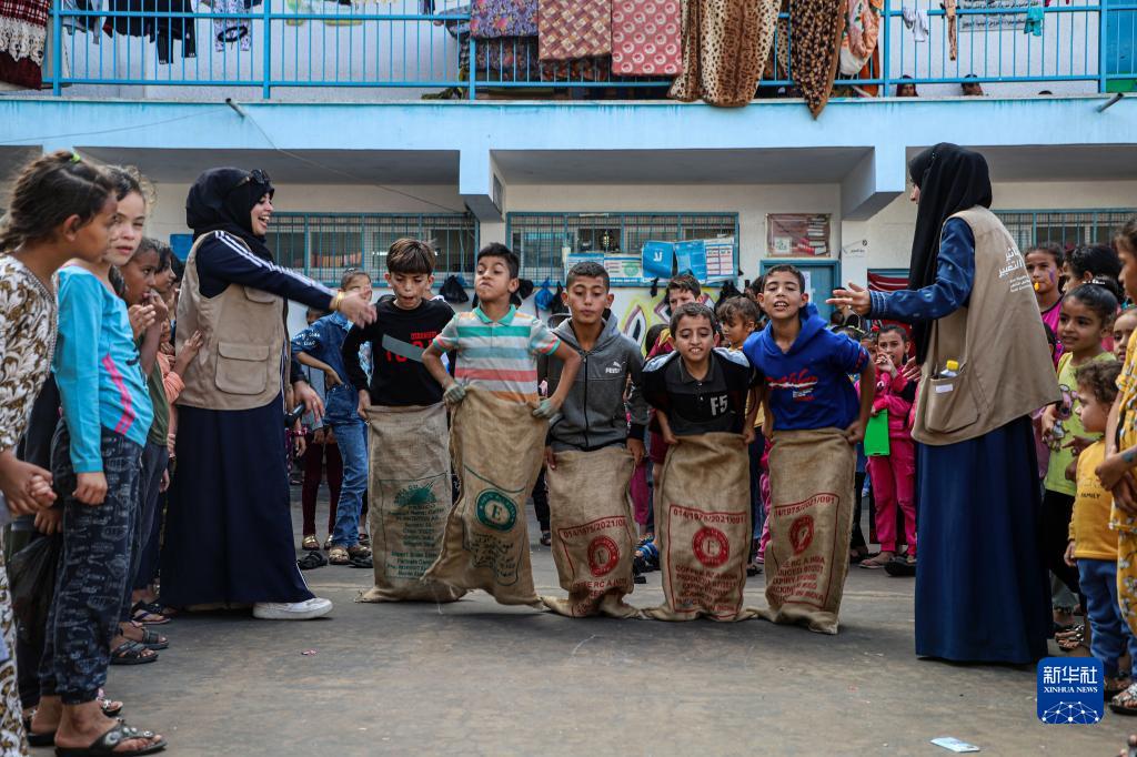 當日,在加沙地帶南部城市汗尤尼斯的一所聯(lián)合國近東巴勒斯坦難民救濟和工程處附屬學(xué)校內,當地志愿者組織多種活動(dòng),關(guān)愛(ài)流離失所的兒童,撫慰戰事創(chuàng )傷。新一輪巴以沖突爆發(fā)一個(gè)月來(lái),加沙地帶已有超過(guò)1萬(wàn)人死亡,其中大約40%是兒童。